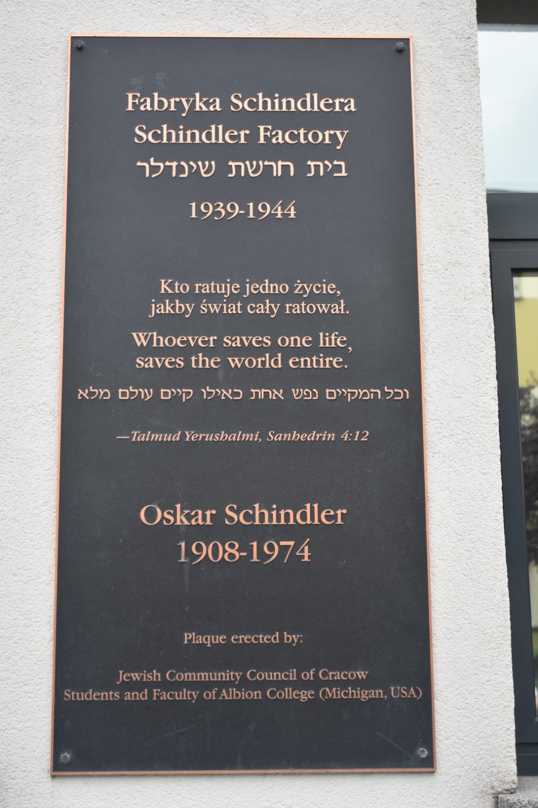 Monumento enfrente de la sinagoga vieja en homenaje a los polacos católicos que ayudaron a los judíos durante la ocupación nazi y fueron asesinados por esa causa.