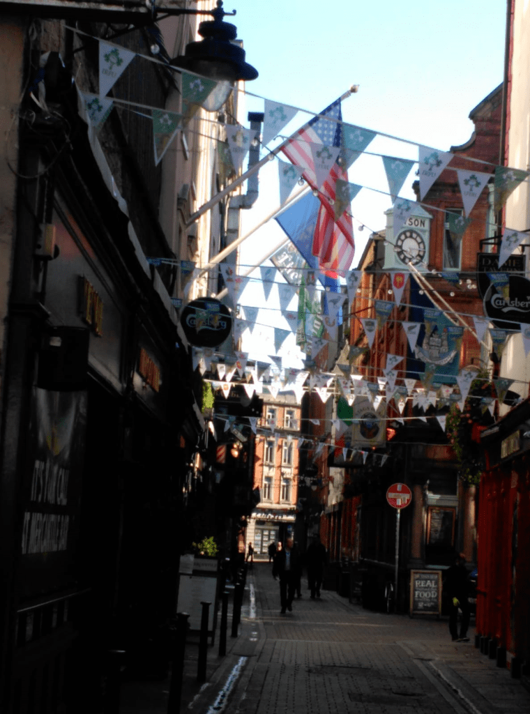 Hablar de Dublín, es hablar de música y alcohol. Un famoso dicho dice: “si hay un irlandés, hay un pub cerca” y es la zona de Temple Bar donde se acumulan la mayor cantidad de pubs que junto a turistas y dublineses pasan la noche de San Patricio yendo de un pub a otro, alternando Guinness y Jameson Whisky, pues ambos son parte de la cultura irlandesa.